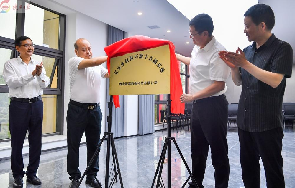 会上,长安区人社局人才服务中心主任刘峰、西安市长安乡村振兴投资发展有限公司总经理龚文军为长安乡村振兴数字直播基地揭牌并致辞。