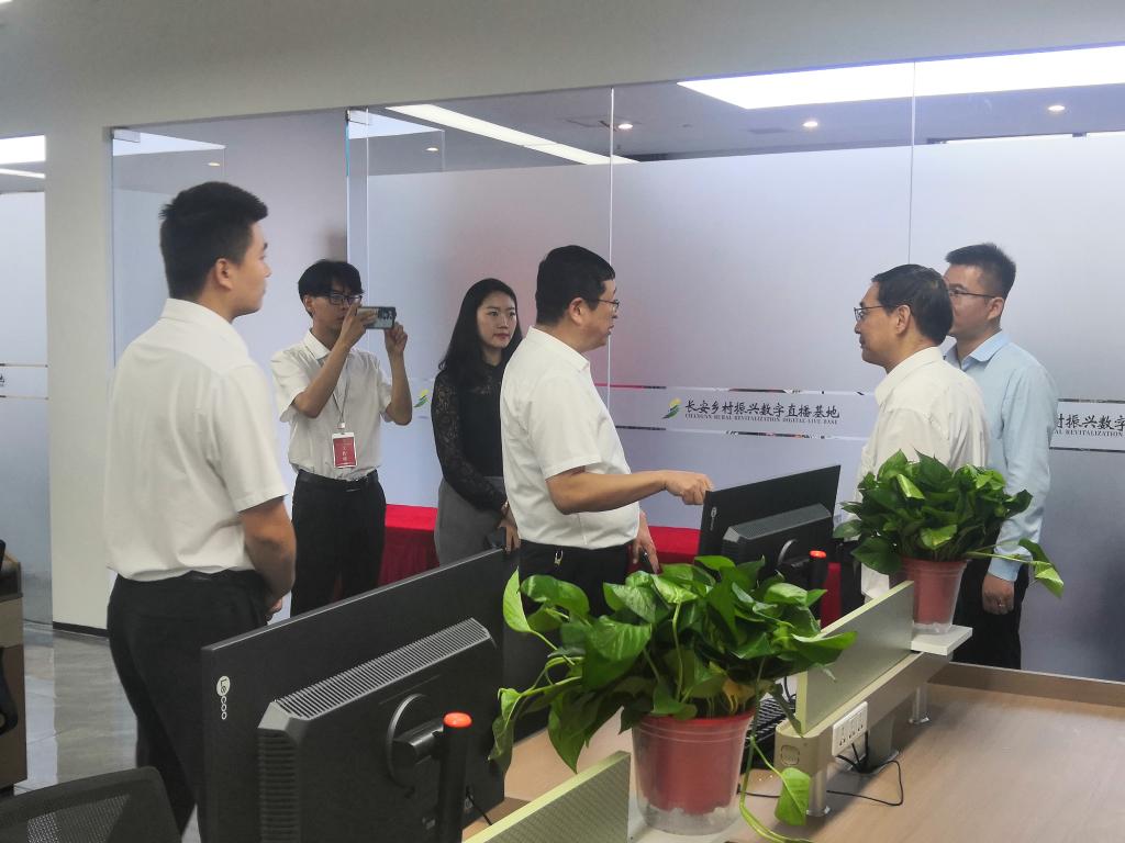 揭牌暨政校企合作签约仪式结束后,学校领导在长安区人社局人才服务中心主任刘峰、西安市长安乡村振兴投资发展有限公司总经理龚文军、长安西安振嘉数据科技有限公司总经理马燕的陪同下参观了长安乡村数字直播基地,并就进一步加强政校企合作、联合人才培养,助力乡村振兴工作进行了深入交谈。期间,学校领导探望了正在数字直播基地实习的学生。