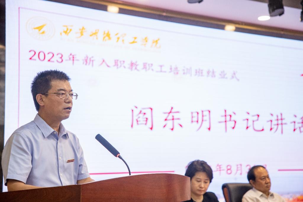 党委书记阎东明作了讲话。他首先对袁汉源董事长及明德源教育集团、学校董事会支持学校师资队伍建设并参加结业式表示感谢。他强调,培养造就一支师德高尚、业务精湛、结构合理、充满活力的高素质专业化教师队伍,是学校事业发展的必然选择。学校也将遵循教师成长规律,以教师可持续发展为目标,推进实施“强师工程”,打造教师发展平台,从政治能力提升、业务能力发展、身心健康保障等方面全方位助力教师成长;推进实施“凝聚力工程”,培育明德价值共同体,厚植爱校兴校情怀,不断提升学校教师的获得感、幸福感。他指出,作为新时代的高校教师,要始终胸怀“国之大者”,以教书育人的实际行动,践行这份光荣使命。希望大家涵养品德、潜心学问,传道授业解惑,做学生理想之师、品行之师、学问之师,努力成为学生为学、为事、为人的“大先生”,在我校以顺利通过教育部合格评估为标志的转型发展中,做出自己新的贡献。