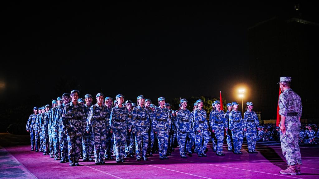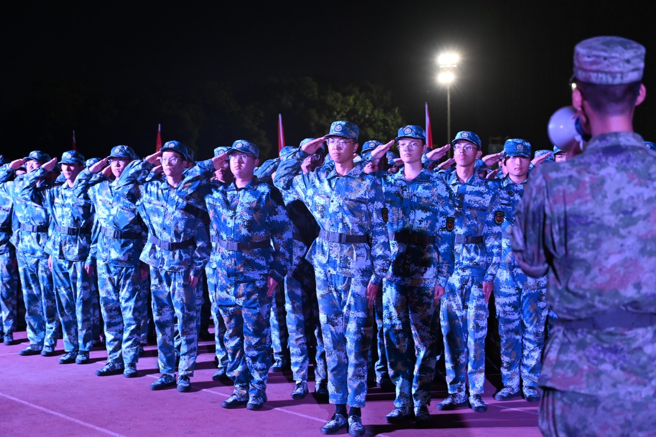最后,余托做总结讲评,并对下一阶段的训练提出三点要求:各连严格要求动作要领,细化训练内容;参训学生要严守军训团各项纪律要求;各部门要相互配合规范标准,加强人员管控和检查力度。