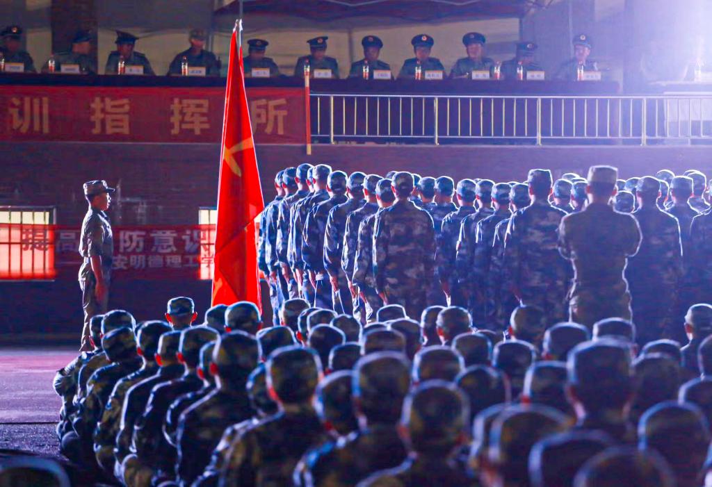 9月3日晚,2023级新生军训团第二次队列会操在操场正式举行。军训团全体军政干部及2023级参训新生参加本次会操。校党委副书记、军训团政委董昊及其它军训团军政干部担任评委。