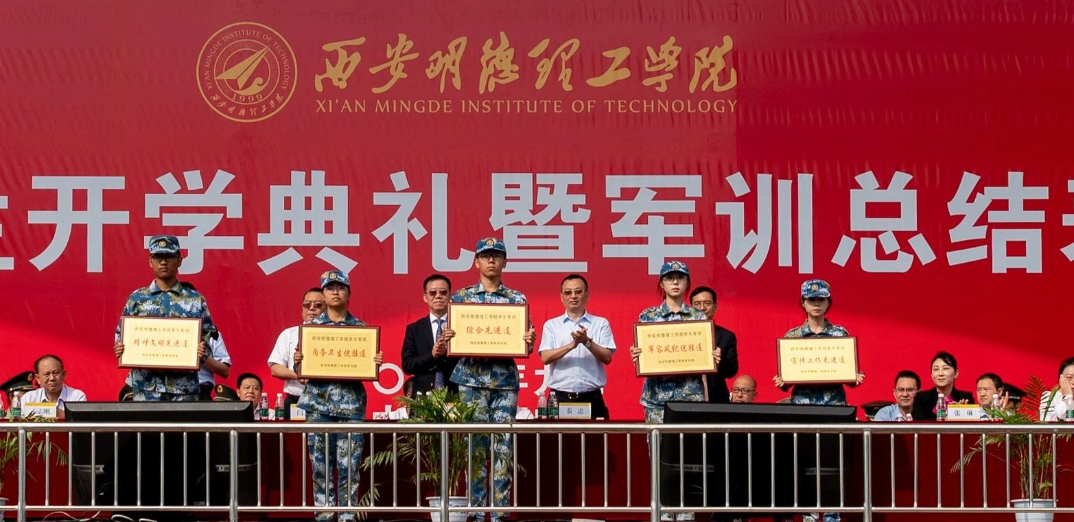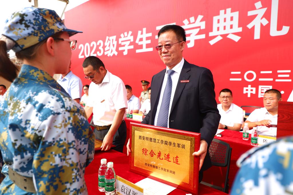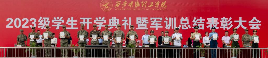 学校军训团团长武文斌同志宣读了《西安明德理工学院2023年军训团表彰决定》,并由现场领导、嘉宾为获奖先进集体及个人颁奖。