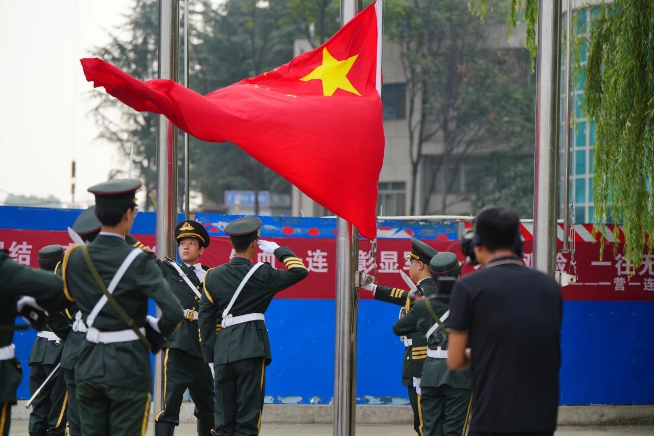 伴着冉冉升起的国旗,唱着庄严雄壮的国歌,典礼拉开帷幕。