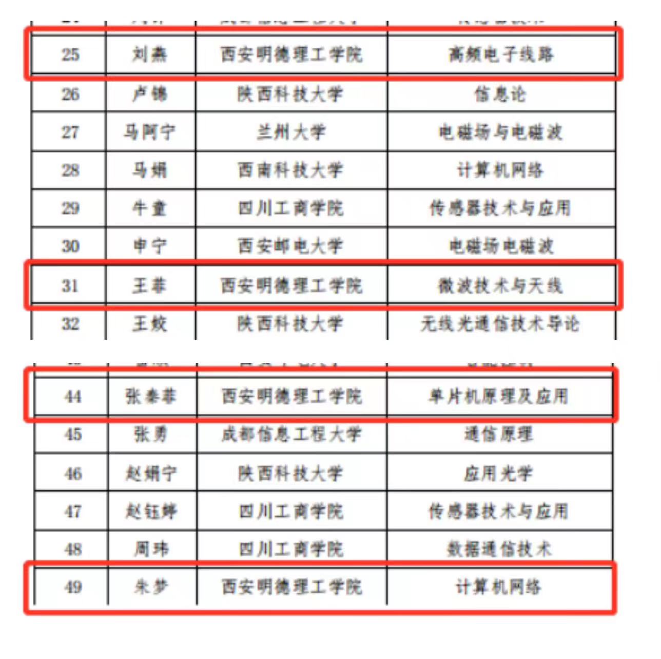 2023年9月12日,第七届全国高等学校电子信息类专业青年教师授课竞赛预赛结果公示,我校信息工程学院四名教师获得华西赛区三等奖。