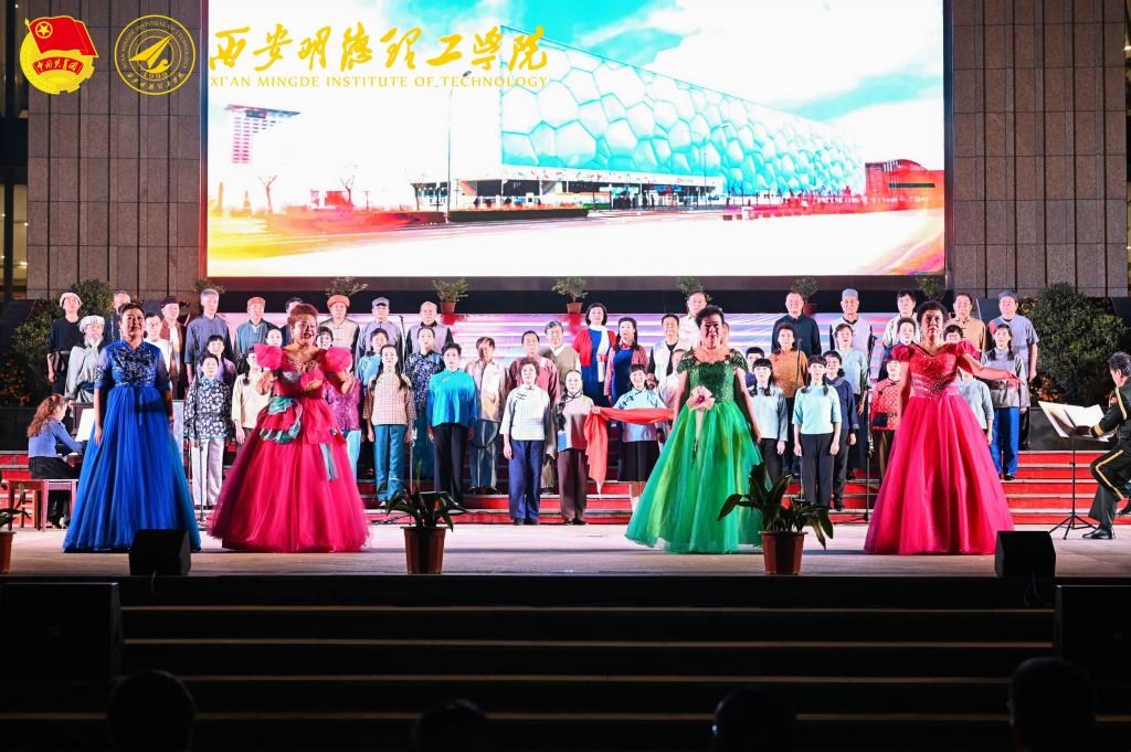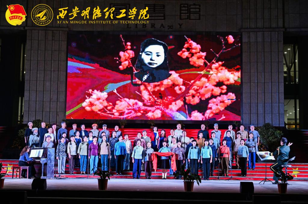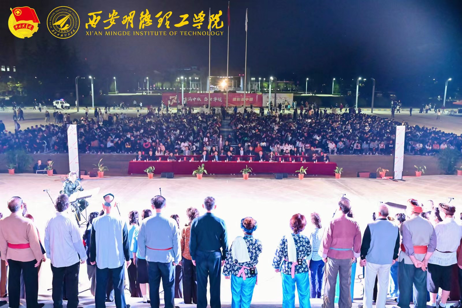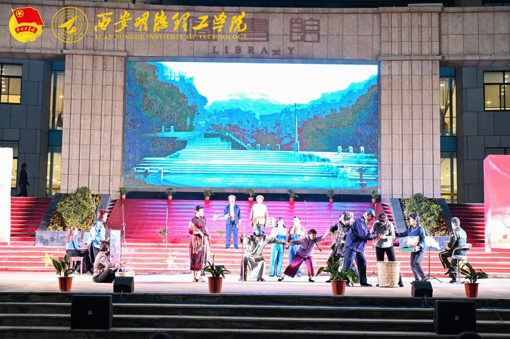 为深入宣传贯彻落实党的二十大精神,弘扬红色文化精神,推动党的二十大精神学习走深走实、入脑入心,教育和引导广大师生传承红色基因、勇担历史使命。10月25日晚,由西安市退役军人事务局主办,西安市退役军人服务中心、西安明德理工学院承办的“传承红色基因 重温红色经典”大型清唱剧《江姐》爱国主义教育活动在学校中心广场隆重举行。学校校长王志刚,副校长白秦川、刘星、陈鹏,财务总监马晓军,学校各单位负责人与3000余名师生代表一起观看了演出。