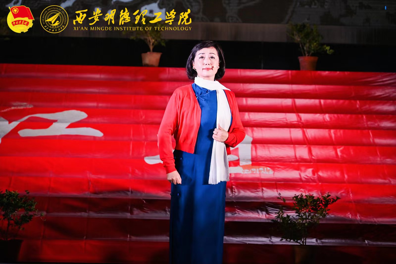 本次演出是由西安市退役军人事务局指导西安市退役军人文化艺术团在经典民族歌剧的基础上创编的《江姐》清唱剧,整场演出分为“初上华蓥”、“前赴后继”、“赴汤蹈火”、“红梅报喜”四个乐章,讲述了共产党员江竹筠为革命英勇献身的英雄事迹,塑造一位对党无限忠诚、坚定顽强、铮铮铁骨、浩然正气与敌人斗争到底的革命斗士形象。以爱国主义、英雄主义作为主旋律,提醒人们铭记历史、缅怀先烈、珍爱和平、开创未来。跌宕起伏的剧情,气势磅礴的历史场景,豪迈的英雄主义画面,感染了在场的每一位师生。