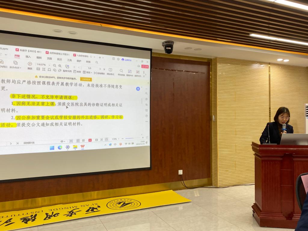 会议第二项,为进一步规范教学管理,提升教学管理人员工作水平,教务处分别对教学运行、学籍管理、实践教学等相关制度文件进行了详细的说明,希望全体教师及管理人员能够深入了解日常教学管理规范,并充分认识到规范管理的重要性。