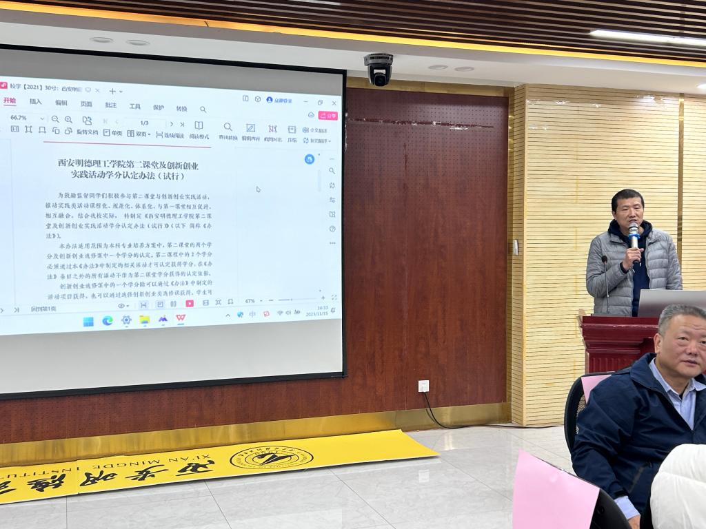 会议第四项,为推动实践类活动课程化、规范化、体系化,与第一课堂相互促进、相互融合。创新创业学院崔岩副院长对我校第二课堂学分认定工作进行了再部署,要求各二级学院按照《关于全面开展第二课堂及创新创业实践活动学分认定工作的通知》文件要求,认真落实学分认定工作。