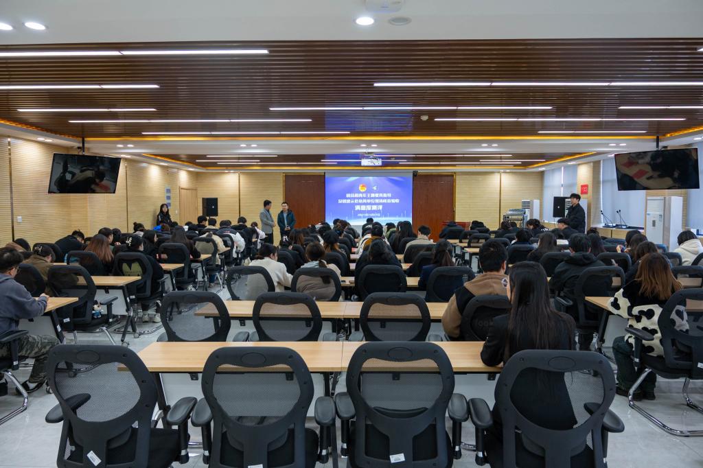 团委书记童杨梓围绕坚持理论武装“学”到位,提升思想引领凝聚力;坚持宣讲矩阵“送”到位,提升青年阐释传播力;坚持志愿服务“做”到位,提升青春建功行动力;坚持朋辈帮扶“跟”到位,提升成长支持服务力等四个方面,汇报了学校团员和青年主题教育开展以来取得的阶段性成果。