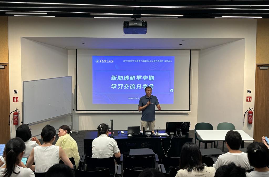 8月8日,新加坡国立大学全英文讲座的头脑风暴结束后,我校骨干教师综合能力提升研修班举行了中期交流分享会。我校党委副书记、副校长、研修班临时党支部书记白秦川,新加坡国立大学教授Johannes Widodo与其研究生Eva Lin Yihua,以及全体研修班成员参加交流分享会,活动由创新创业学院副院长崔岩主持。