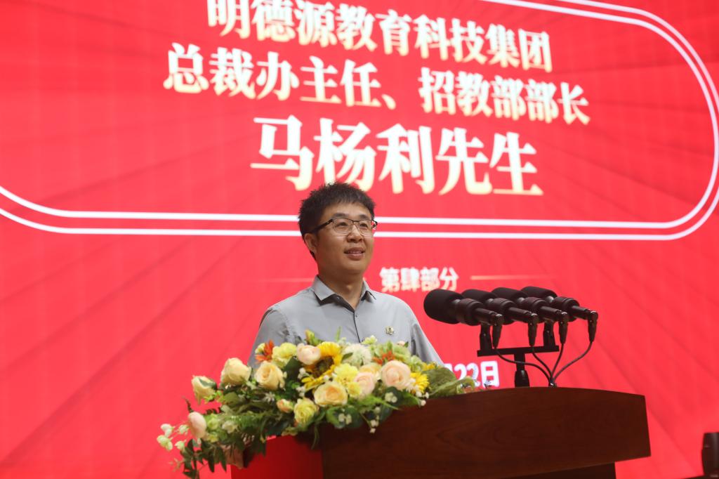 受董事长袁汉源先生、副董事长张琳女士委托,明德源教育集团招教部总经理、总裁办主任马杨利讲话。他代表集团董事长袁汉源先生、张琳女士,向加入明德理工学院大家庭的新同事新战友们表示最热烈的欢迎和最诚挚的问候!对学校教师发展中心对此次培训工作精心安排、周密部署点赞!他代表董事长袁汉源先生、副董事长张琳女士对新入职教职工提出三点希望:第一,坚守初心,勇担使命。牢记为党育人、为国育才的初心使命,牢记明德、亲民、至善的校训,把个人的职业追求与党和国家的前途命运紧密结合起来,以高度的责任感和使命感,全身心投入到教育教学工作中去。第二,内修于心,外化于行。当前我们学校正处于本科合格评估爬坡过坎期,高质量发展转型期,要保持孜孜不倦的学习热情,不断更新教育理念,提高专业水平,百尺竿头,更进一步。希望大家在培训中做到“五个要”。一要坚定学习目标。二要端正学习态度。三要加强理论武装。四要改进学习方法。五要注重团队协作。第三,笃行不倦,善做善成。“想干事”是态度,“会干事” 是能力,“干成事”是本事,要始终保持求真务实的作风。同时,也希望学校严格要求,大胆管理,使学员在提升理论水平的同时,能受到严格的党性锻炼,为我校培养出一批“靠得住、派得上、用得好、有本事”的高素质人才队伍。最后,他祝全体新入职的教师身体健康、学有所成。