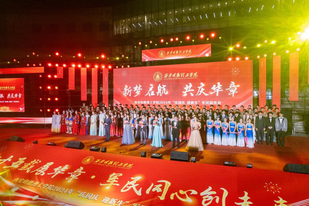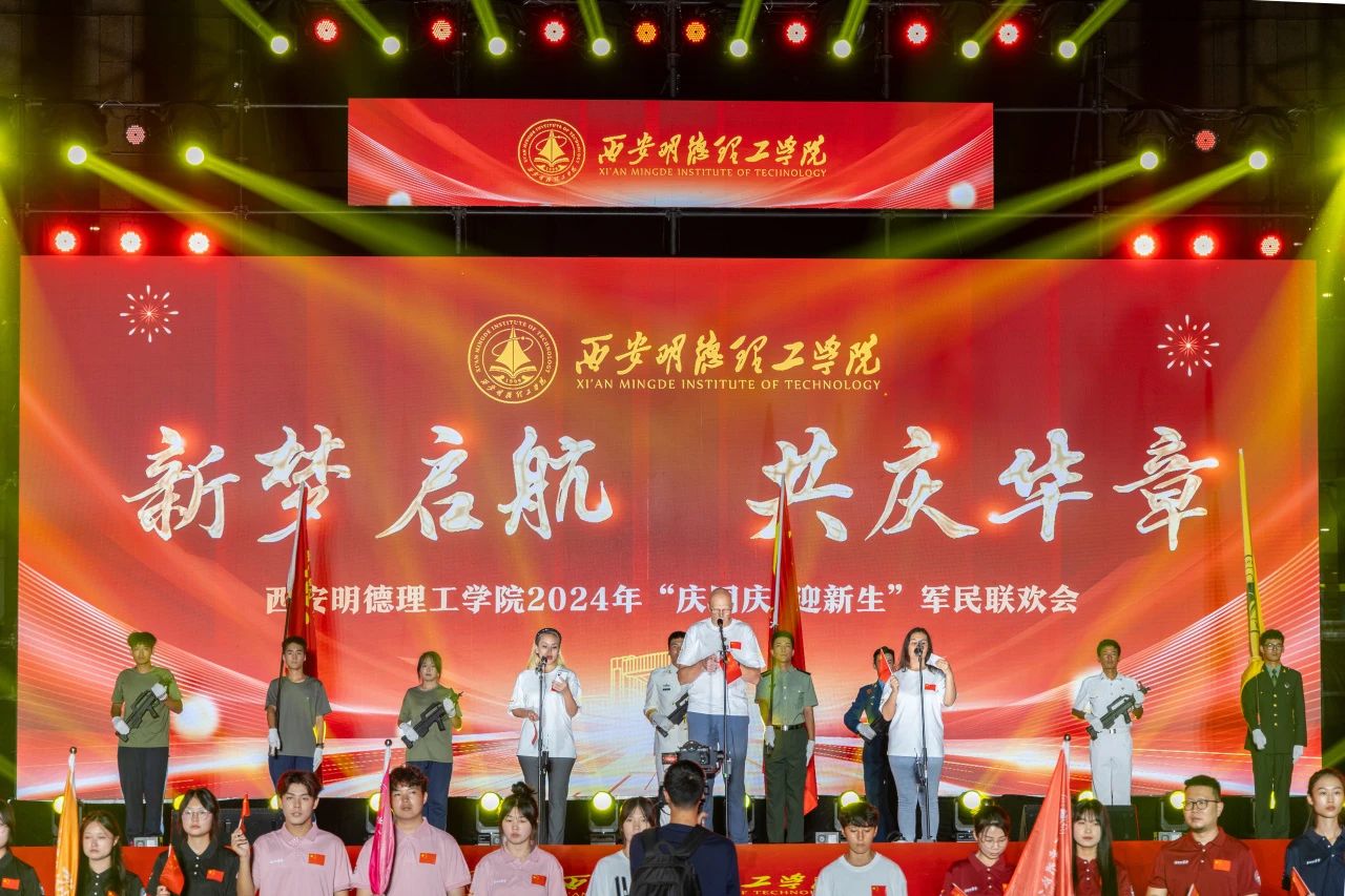 “庆国庆·迎新生”军民联欢会,不仅是一场视听盛宴,更是一次心灵的洗礼。它展现了西安明德理工学院师生的风采与活力,也体现了军民一家亲的深厚情谊。在这个特殊的夜晚,我们共同祝愿伟大的祖国繁荣昌盛,祝愿新生们在西安明德理工学院开启精彩的人生新篇章。“新梦启航·共庆华章”西安明德理工学院2024年“庆国庆·迎新生”军民联欢晚会到此圆满结束。