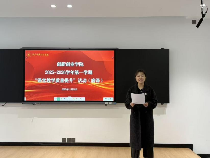 根据校教字〔2025〕78 号文件关于开展 2025-2026 学年第一学期“课堂教学质量提升”活动(磨课)的通知》,11月26日上午,我院“课堂教学质量提升”磨课活动在凌云会堂311顺利举行。院长崔岩、教研室主任李亚利、办公室主任奚颖参加本次磨课活动,活动由奚颖主任主持并介绍点评专家张雪霞副教授、董小泰高级经济师、冯宁主任学院全体教师参
