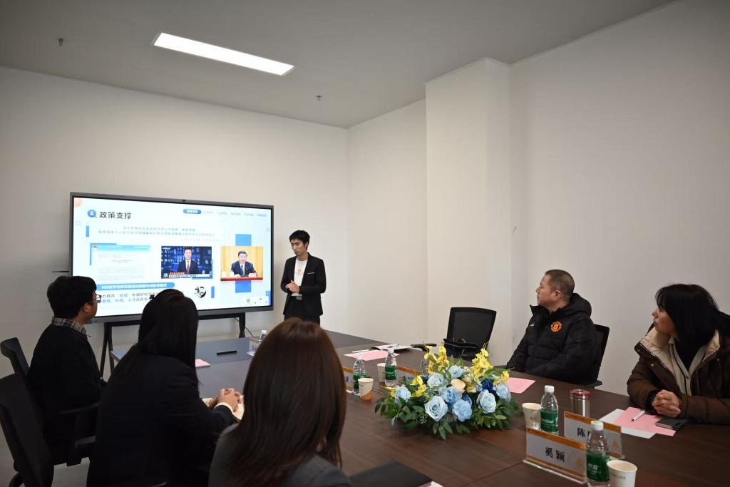 随后,陕西星途云奕教育科技有限公司总经理周晓栋详细介绍了公司的发展历程、业务布局、核心技术优势及未来规划。他表示,公司从初创阶段便得到创新创业学院的全方位支持,从场地供给、资源对接到底蕴深厚的"明德"育人文化滋养,为企业发展筑牢了根基。期待以此次考察为契机,深化与政府部门、母校的多方合作,实现更高质量的发展。