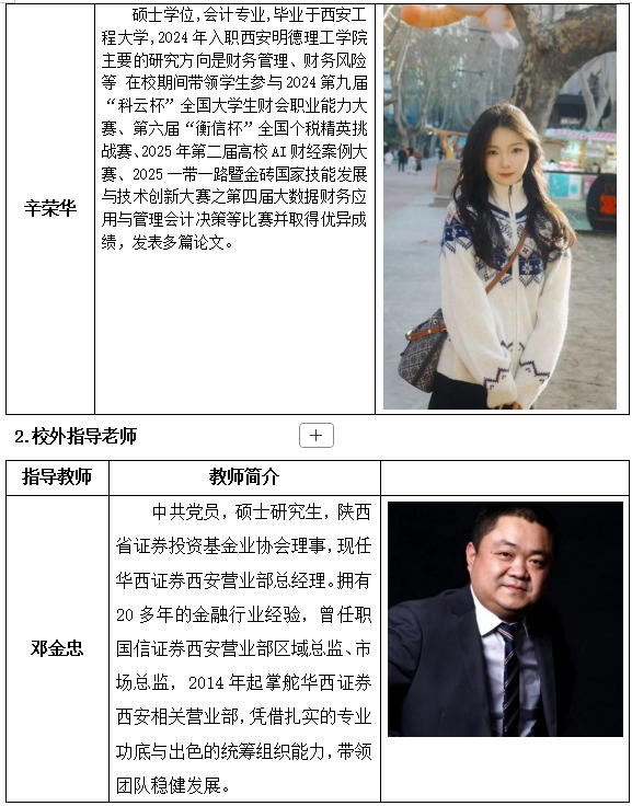2024年吸引近百名学生参与,涵盖会计学、金融学、金融科技、计算机科学与技术、大数据技术、通信工程、电子信息工程、机器人工程、视觉传达设计等多专业学生,真正做到“跨专业融合、跨学科融合”,并于2024年5月成立陕西明晟合企业管理有限公司,推动科研成果转化与学生创业实践。