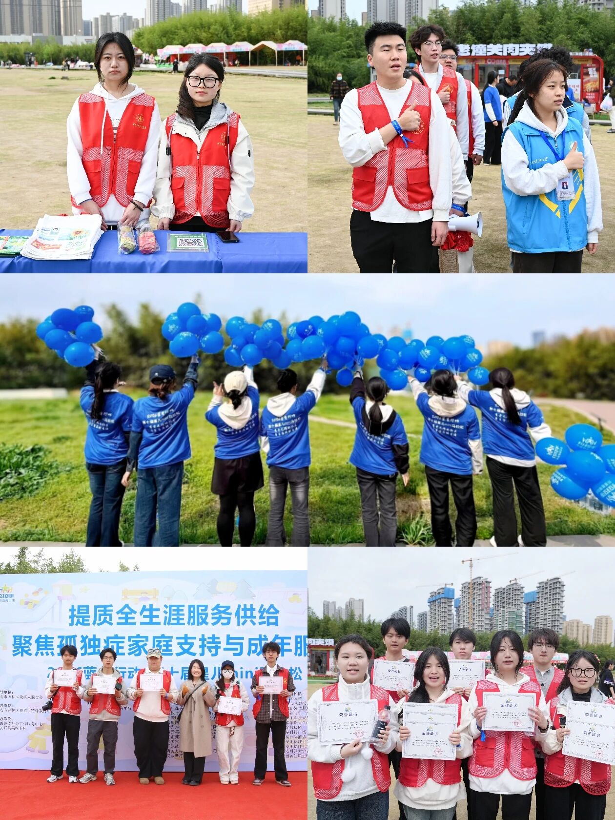 志愿者们分散在赛道全程、起跑终点、打卡点位、游戏区域,分工协作、各司其职:领跑与指引志愿者轻声陪伴、稳步前行,为孩子们加油鼓劲;打卡点志愿者细心引导打卡、盖章、分发蓝色气球,守护每一份小喜悦;摄影志愿者定格温暖瞬间,记录孩子们勇敢奔跑的可爱模样;义卖、接驳、后勤志愿者默默坚守,保障活动顺畅运行。