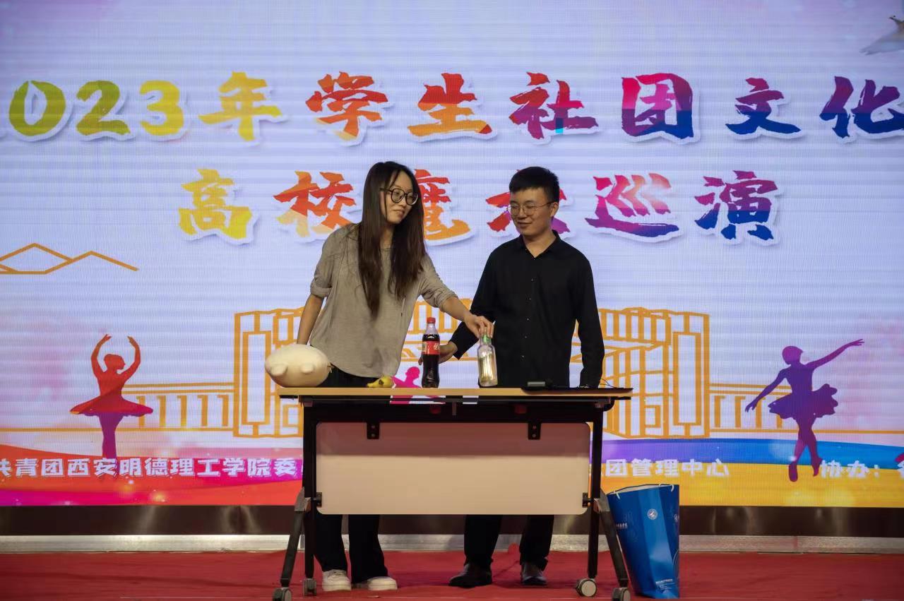 为营造浓厚的书香校园氛围,传承中华传统文化。6月15日,由校团委主办,学生社团管理中心承办的“社光溢彩·团聚明德”2023年学生社团文化艺术节高校魔术巡演活动在西安明德理工学院建德楼203报告厅成功举办。