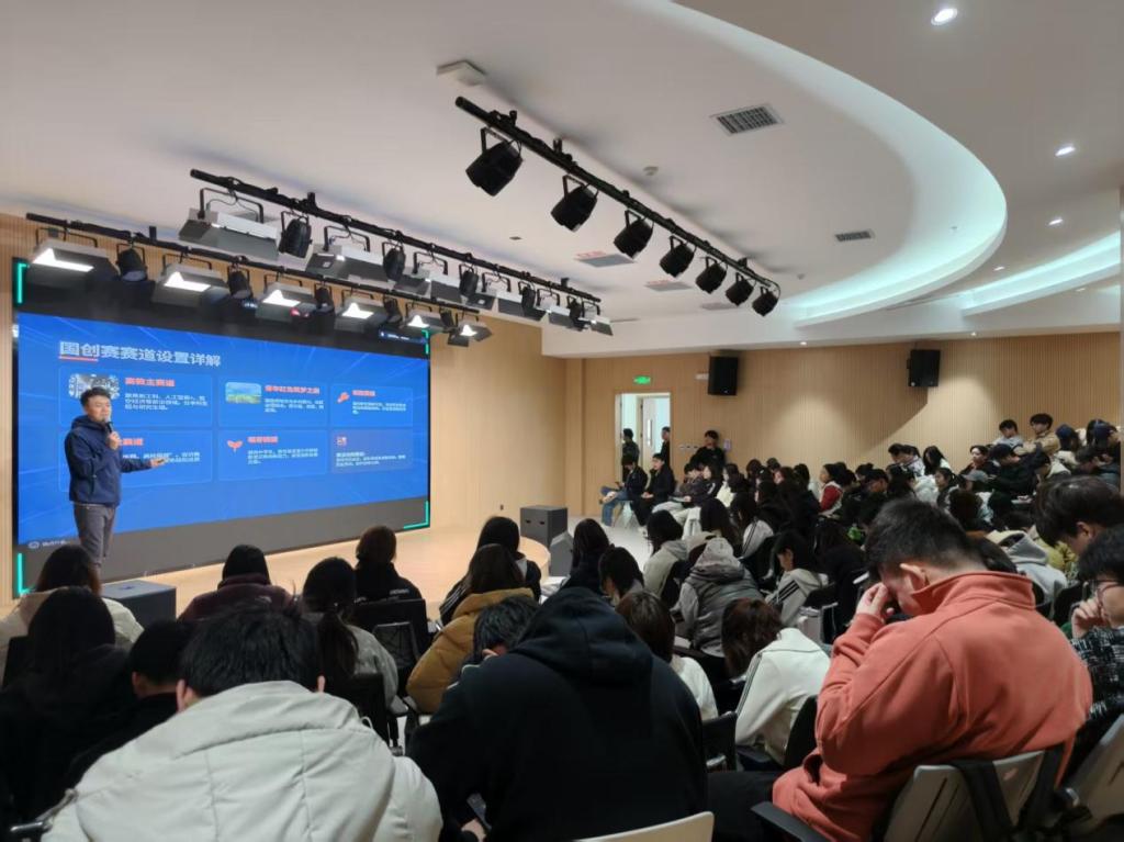 为持续深化学校创新创业教育改革,切实提升学生双创赛事核心竞争力,助力广大学子精准备战国家级创新创业赛事,3月19日,我院在凌云会堂315路演厅举办创新创业竞赛备赛专题讲座。本次讲座特邀深耕国家级双创赛事辅导的资深专家、中国国际大学生创新大赛国赛及陕西省、江苏省等多省赛区评审专家滕进涛先生担任主讲嘉宾,吸引全校 240余名学生到场参与学习交流。