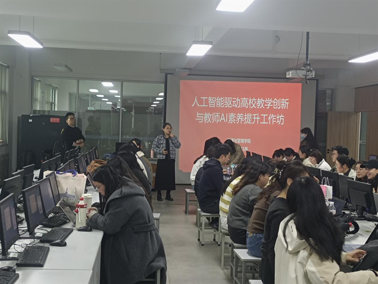 为推动人工智能与高校教学深度融合,提升教师数字化教学能力与创新素养,近日,经济与管理学院在明心楼南208举办“人工智能驱动高校教学创新与教师AI素养提升工作坊”培训。特邀智慧树网AI事业部西北大区AI应用顾问邓尧担任主讲嘉宾,学院50余名教师参训,活动由学院副院长许萍主持。