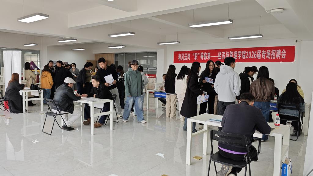 为助力毕业生实现更充分更高质量就业,3月24日,经济与管理学院在明志楼南411举办专场招聘会。西安长安德勤企业管理有限公司、陕西泾航企业管理集团有限公司、北京希望在线线上学科培训学校等多家企业到场参会,提供岗位80余个,学院2026届毕业生参加了招聘会。