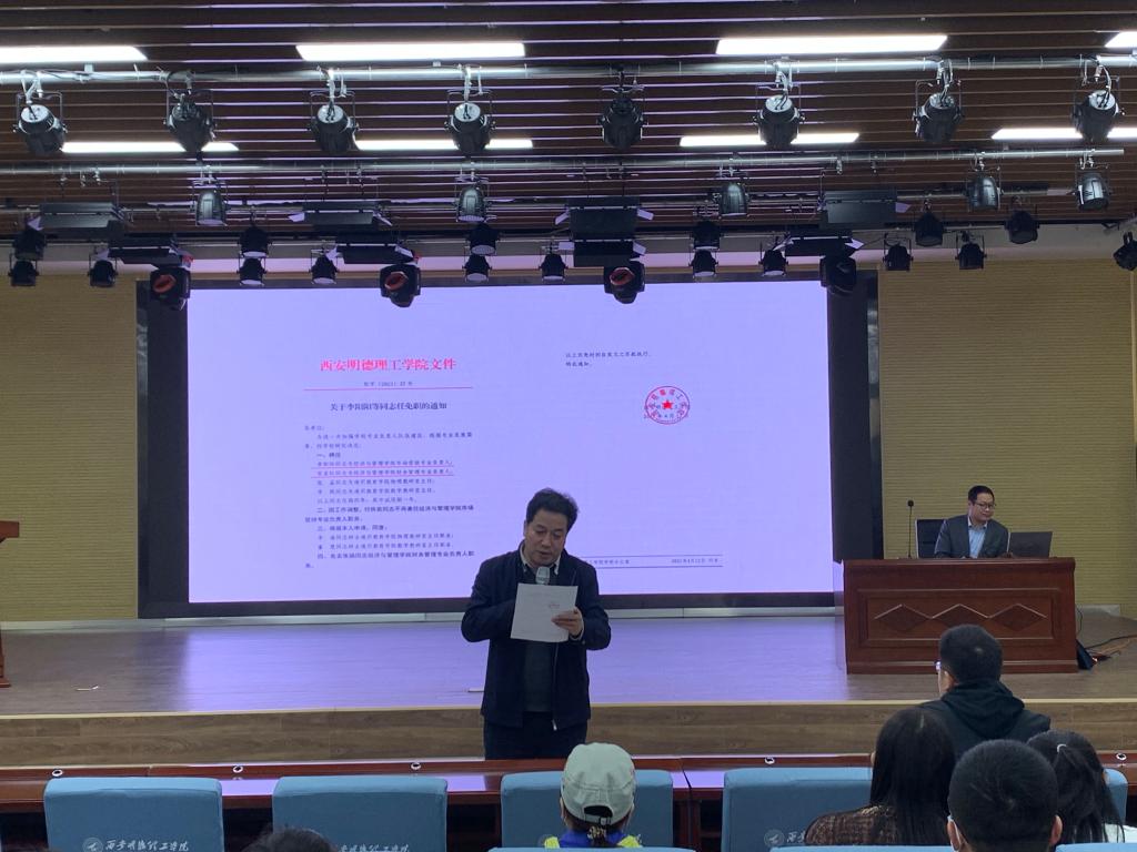 首先,人力资源部康抗宣读了校字〔2021〕11号、32号文件中对付铁岩及张瑜同志的任命,并表示祝贺。院长郭鹏宣读了校字〔2021〕37号文件中对李阳阳、宫亚红同志专业负责人的任命,并期望在队伍建设不断完善的过程中,学院各项工作也能不断创新、不断突破。
