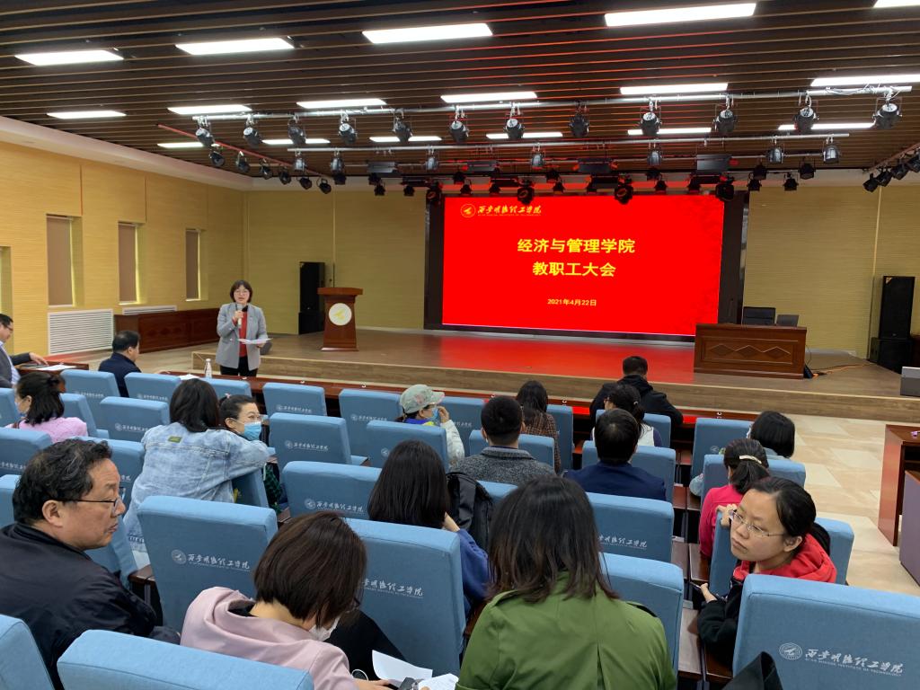 4月22日,为凝心聚力、推进学院各项工作,经济与管理学院在6#203召开全院教职工大会。人力资源部康抗、经济与管理学院院长郭鹏,副院长付铁岩、张瑜,党总支书记高超,办公室主任张蓓,各专业负责人及全体教职工参会。会议由副院长张瑜主持。
