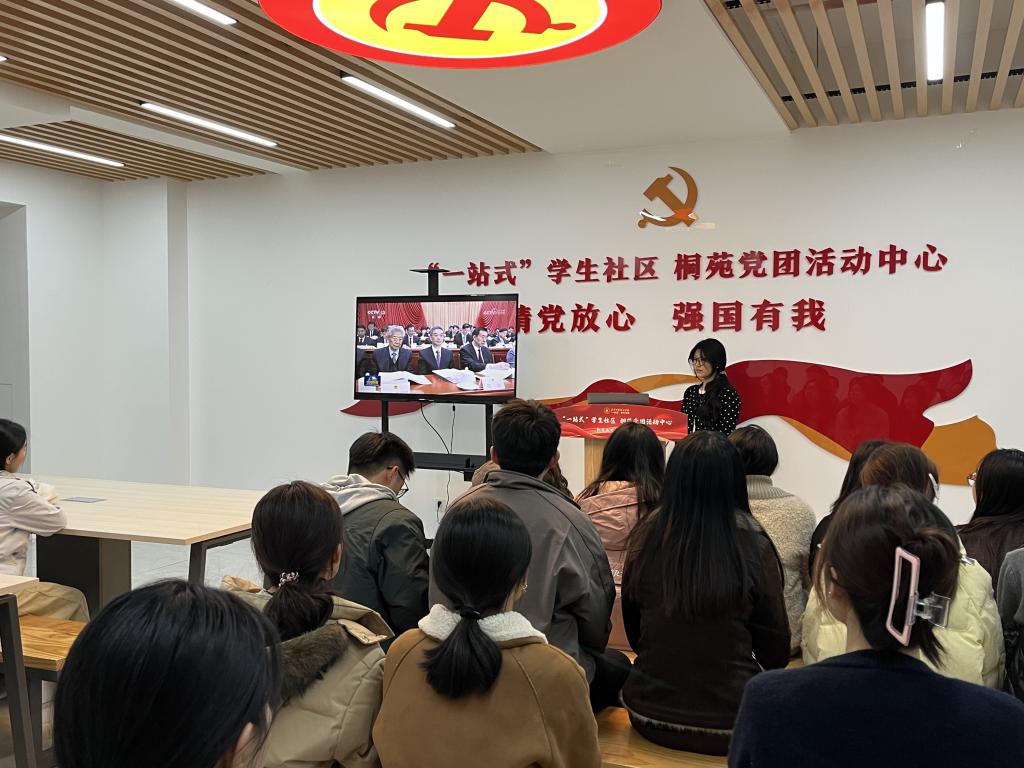 为深入学习贯彻2026年全国两会精神,引导学生党员与入党积极分子准确把握国家发展大势,筑牢思想根基、凝聚奋进力量,3月16日,经济与管理学院学生第五党支部在“一站式”学生社区桐苑党团活动中心开展2026年全国两会精神学习暨树立和践行正确政绩观学习教育专题学习会。会议由支部党员侯佳仁倬主持,支部全体在校党员及入党积极分子代表共同参与学习研讨。