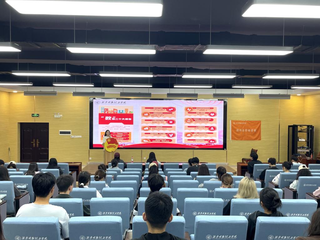 为深入学习贯彻党的二十大精神,引导广大青年学习习近平新时代中国特色社会主义思想,推动主题教育与加强基层团组织相结合。5月25日晚,经济与管理学院在建德楼201开展学习习近平新时代中国特色社会主义思想宣讲团课,学院全体团学干部参加了学习。学校习近平新时代中国特色社会主义思想师生宣讲团成员耿露老师担任本期主讲人。