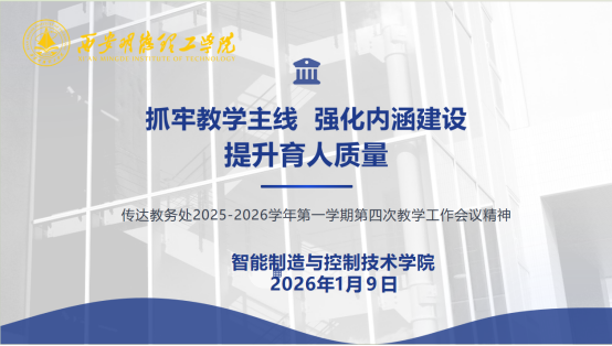 为响应学校2025-2026学年第一学期第四次教学工作会议部署,扎实推进学院教学质量提升,2026年1月9日15:30,智能制造与控制技术学院在6号建德楼201室召开专题会,传达会议精神并部署后续工作。教务处处长任华线上参会,学院教师、实验员全员参与。