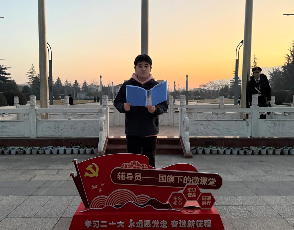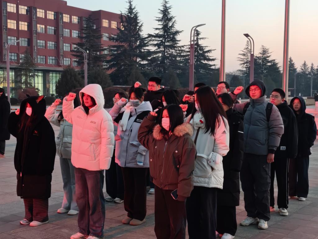 “我庄严宣誓:恪守诚信底线,严守考试规章;摒弃舞弊杂念,秉持学术良知……”在支部党员、国家奖学金获得者段宇彤领誓下,全体同学右拳紧握,面向国旗许下铮铮誓言。声声承诺化作冬日里最炽热的信念,表达了新时代大学生以诚信立身、以实干筑梦的共同意志。