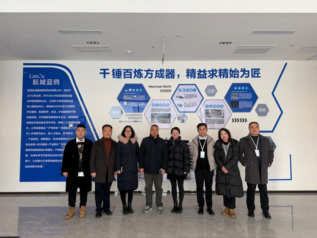 为精准对接智能制造与航空航天产业人才需求,深化产教融合育人机制,2026年1月21日,智能制造与控制技术学院副院长李郁带队,与学院党委副书记曾凯、机械设计制造及其自动化专业负责人刘洋电气工程及其自动化专业负责人刘晓春和机器人工程专业负责人王卫军一行,先后走访调研中科航星科技股份有限公司西安分公司、陕西航城蓝鸥教育科技有限公司,围绕校企共建课程、实习实训基地建设、人才培养方案优化等核心议题开展深度交流。