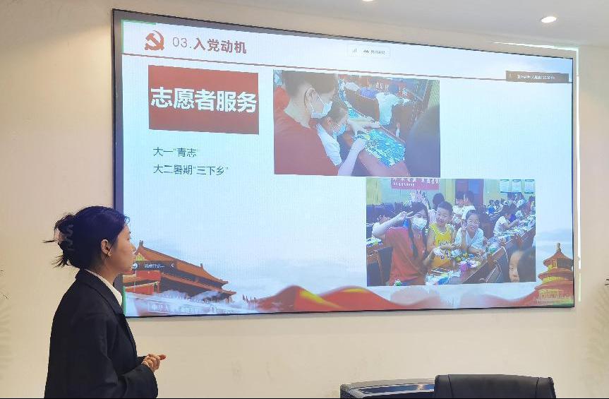 会上,支部书记张睿华老师介绍此次会议流程并宣布预审发展对象会议正式开始。24名拟发展对象逐一上台,依次围绕个人基本情况、入党动机、对党的认识、学习成绩、工作实践等多方面进行汇报,同时认真审视自身的不足并加以改正,纷纷表示积极向身边优秀的党员同志学习,树立好先锋模范带头作用,争取早日加入中国共产党。