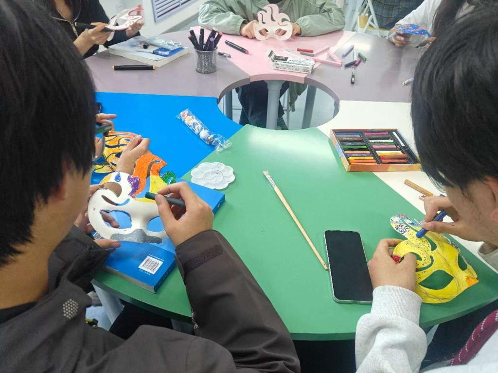 创作结束后,多位同学主动分享了自己的作品和创作感受。大家纷纷表示,面具涂鸦不仅是一次有趣的艺术体验,更是一次与自己内心对话的机会。在“以美润心”的过程中,压力得以释放,内心获得平静。