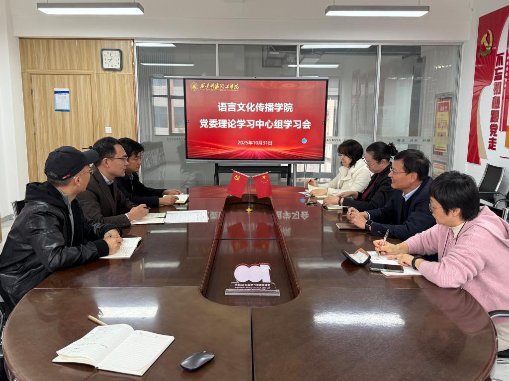 10月31日上午,语言文化传播学院在明志楼北406会议室召开党委理论学习中心组会议,专题学习党的二十届四中全会精神和习近平总书记给全国特岗教师代表回信精神。学院党委理论学习中心组成员参加会议。会议由学院党委书记赵旭东主持。