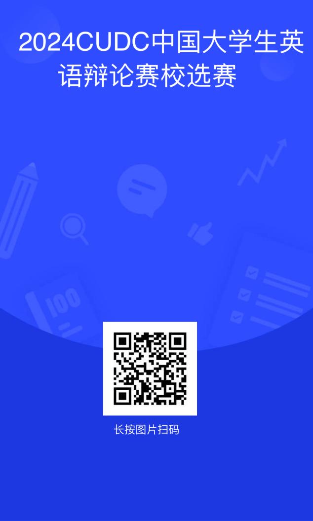 由中国外文局CATTI项目管理中心(即全国翻译专业资格(水平)考试项目管理中心)主办的2024年中国大学生英语辩论赛(CUDC)已启动,我校现举办校园选拔赛,拟在全校范围内选拔出优秀队伍代表学校参加全国总决赛。具体报名事项如下: