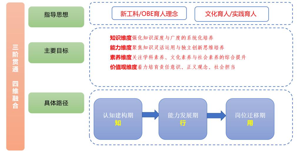 专业构建了"三阶贯通、四维融合"的创新育人模式,形成完整的人才培养体系。
