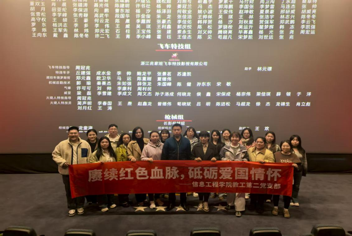 为深化爱国主义教育,引导教工党员从革命历史中汲取奋进力量,学院教工第二党支部于11月3日下午组织开展“赓续红色血脉 砥砺爱国情怀”主题党日活动,集体观看了抗美援朝题材影片《志愿军:浴血和平》。在光影中重温峥嵘岁月,感悟初心使命。