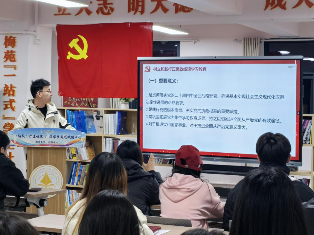 为深入贯彻落实党中央关于开展树立和践行正确政绩观学习教育的部署要求,切实引导支部党员筑牢思想根基、强化责任担当,3月15日,信息工程学院学生第五党支部在梅苑一站式学生社区召开树立和践行正确政绩观学习教育动员部署会,支部全体党员参加。