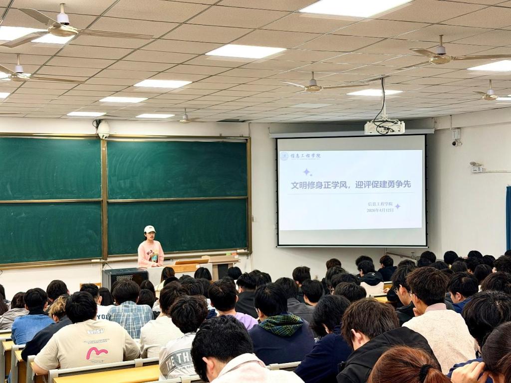 此次班会进一步规范了学生日常行为,凝聚了迎评促建思想共识。下一步,信息工程学院将持续深化文明修身与学风建设,引导全体学生以文明素养为基、以迎评促建为责,以实际行动为学校高质量发展贡献青春力量。