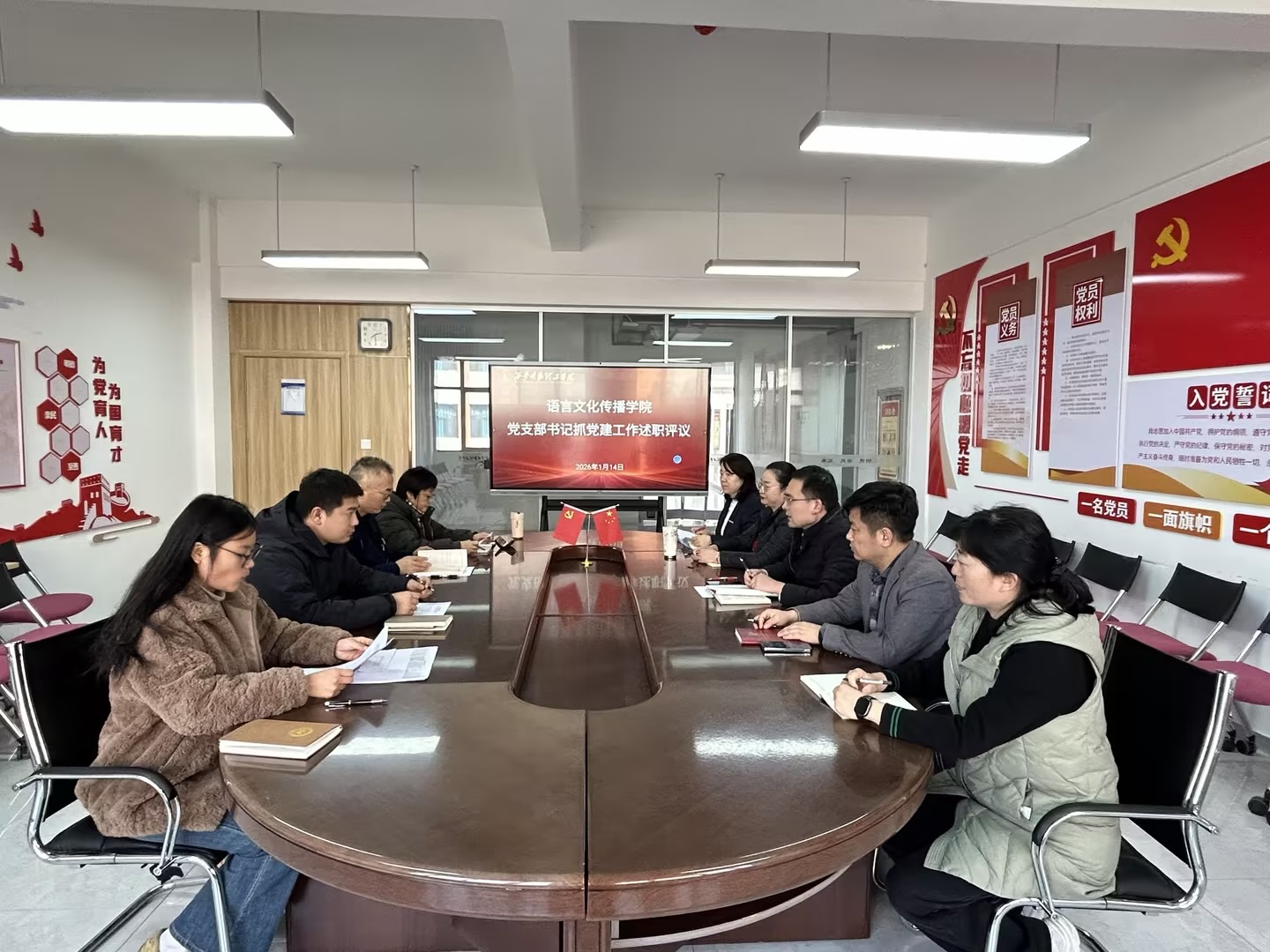 为推进全面从严治党向基层延伸,切实履行管党治党政治责任,按照学校《关于开展2025年度基层党建述职评议考核工作的通知》要求,1月14日,语言文化传播学院召开党支部书记抓党建工作述职评议考核会议。学院党委班子成员,各支部书记参加会议。会议由学院党委书记赵旭东主持。