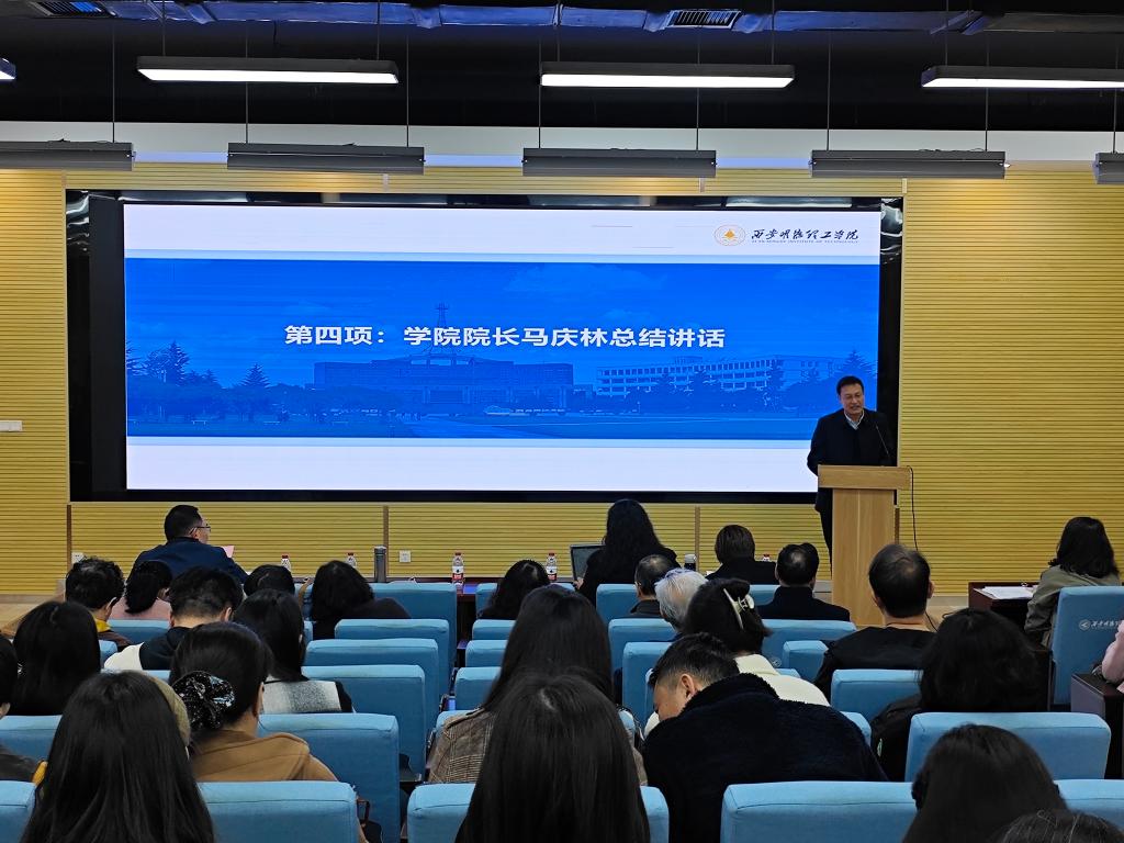 院长马庆林在总结讲话中深入剖析了学院当前面临的招生难题、本科教学合格评估工作的挑战以及青年教师管理问题。他结合当前形势,围绕“两个统一、一个坚持”提出了三点意见:一是思想认识上要高度重视,高度统一。二是行动上要高度协调,高度统一,严格对照迎评工作时间表路线图压实责任,构建全链条协同作战体系;三是坚持问题导向、目标导向、成果导向,凝聚合力,补齐短板,确保各项工作取得实效。马庆林希望全体教职工能直面问题,勇于迎接挑战,以高质量高标准顺利通过合格评估,圆满完成招生任务,全面提升学院教育教学质量。