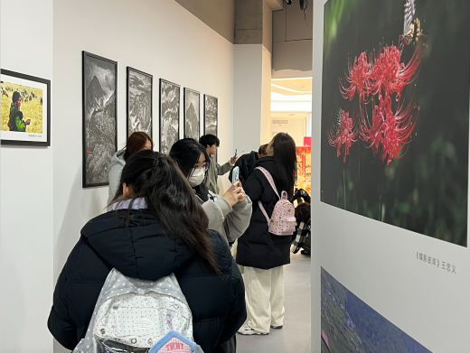 步入展览现场,“方寸之间藏万象”的主题标语映入眼帘。展厅内,百余幅从陕西艺术摄影学会“每日一图”专栏及我校数字媒体艺术、影视摄影与制作专业学生作品中精选的影像作品有序陈列。镜头下,既有多元视角捕捉的城市脉动,也有细腻定格的烟火温情,让同学们直观感受到摄影艺术“以小见大”的创作魅力。大一学子们驻足作品前,或轻声交流对画面构图、光影运用的理解,或用手机记录作品细节,沉浸式体会影像背后的精神思考与情感温度。