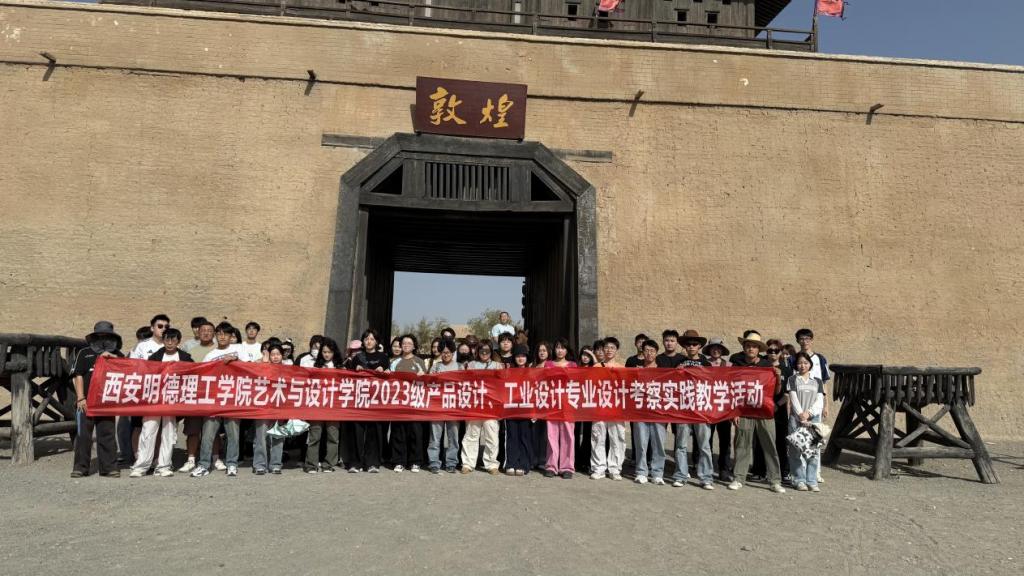 2025年9月10日,西安明德理工学院艺术与设计学院产品设计与工业设计专业的师生们,踏上了前往甘肃省敦煌市的旅程,正式开启了第三学期别具意义的《设计考察》课程。此次考察旨在带领学生深入挖掘敦煌文化的深厚底蕴,从古老文明中汲取设计灵感,在实地探索与学习中拓宽专业视野,提升文化感知力与设计创新能力。