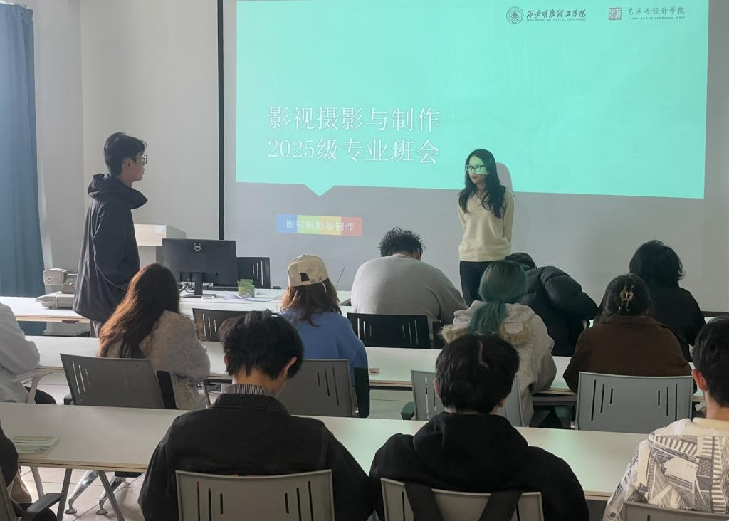 在讲座开始之前,影视摄影与制作专业2025级专业班主任杨宇堃老师为同学们召开了专业班会,就学生近期在专业认知、专业学习等方面予以指导和解答,并引导学生尽快形成良好的班风、学风,督促学生提升学习兴趣与热情,后续将结合学生时间,将专业班会形成惯例,以确保学生与专业教师的深入交流,共同促进专业发展。