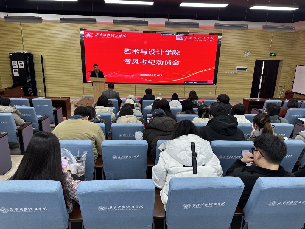 为全面贯彻落实立德树人根本任务,统筹推进学院各项重点工作,2026年1月8日,西安明德理工学院艺术与设计学院召开全体教职工大会,会议由学院党委副书记乔建主持。本次会议围绕师德师风建设、就业工作暖冬行动部署及期末考风考纪规范三大核心议题展开。