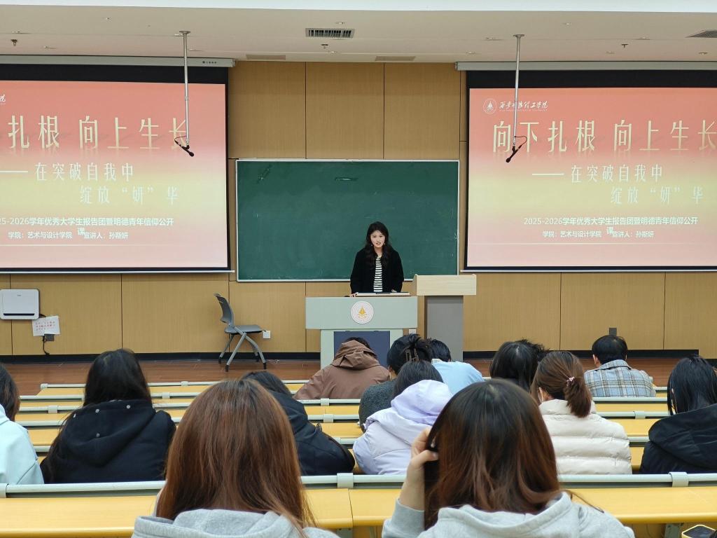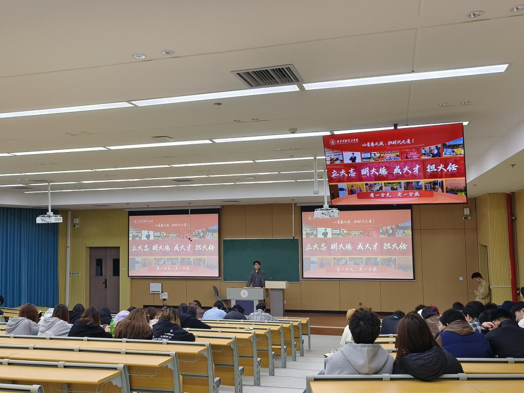 为深入贯彻落实党的二十大精神与全国教育大会部署,全面落实立德树人根本任务,扎实推进新时代高校思想政治工作体系建设,积极响应教育部“立报国强国大志向 做挺膺担当奋斗者”宣传教育号召,充分发挥朋辈榜样示范引领、以点带面、正向赋能的育人作用,引导广大青年学子坚定理想信念、厚植家国情怀、锤炼过硬本领、勇担时代使命。2026年3月29日19:30,西安明德理工学院艺术与设计学院于学校7号教学楼301、302教室隆重开展“榜样引航筑梦想,青春奋进正当时”优秀大学生成长分享专题宣讲会。本次活动由学院宣传部姚昊雨同学主持,全院学生到场参会聆听学习。