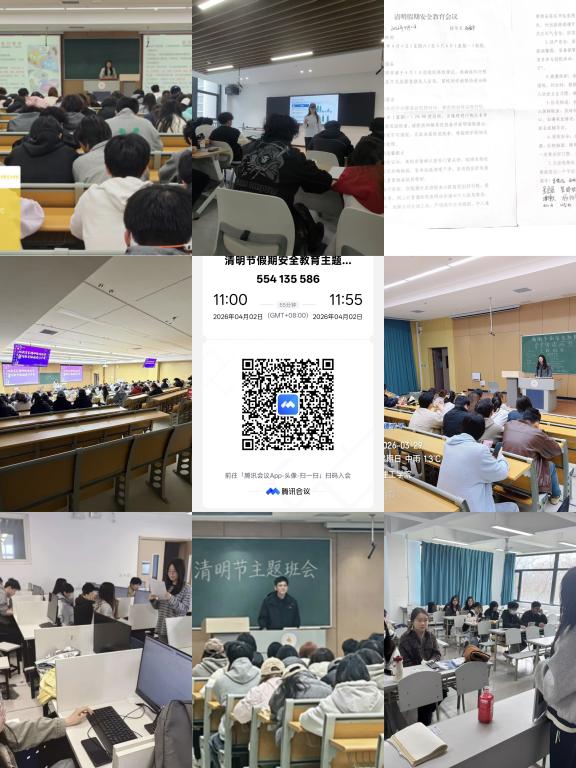 3月29日至4月2日,全体辅导员精准统计学生去向情况并召开清明节学生安全管理教育主题班会。全体辅导员强调假期在校住宿的同学要听从学校统一安排,遵守学校各项管理规定;增强网络安全意识,做好健康管理;自觉遵守交通法规,确保出行安全;选择正规景区游玩,不去危险区域;注意饮食,不买、不吃三无食品或过期的食品;践行文明低碳祭扫,以绿色方式寄托哀思。