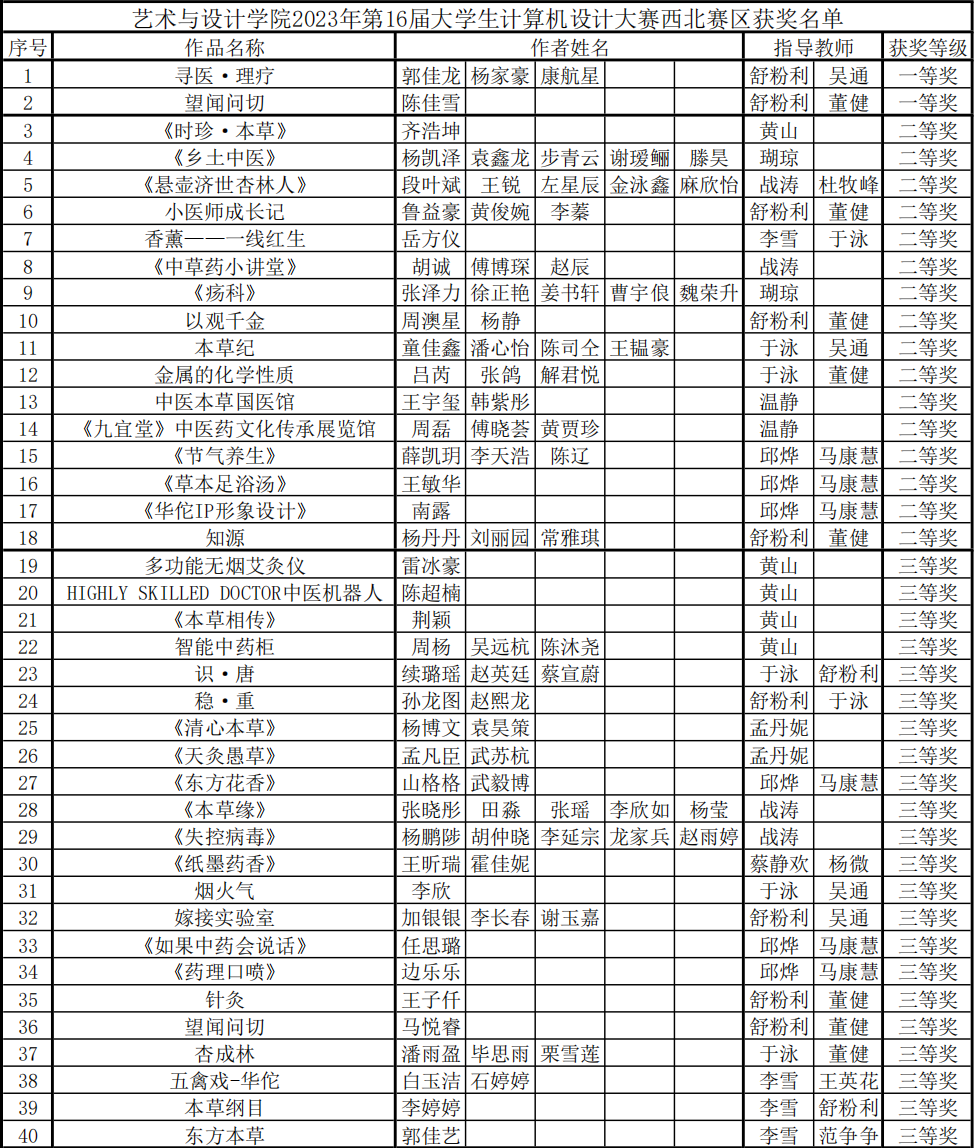 2023年5月第16届中国大学生计算机设计大赛西北赛区决赛在西北农林科技大学落下帷幕。西安明德理工学院艺术与设计学院学生在各位专业教师的精心组织和指导下,经过学院筛选,共进入西北赛区参赛作品90余组,经西北赛区组委会初审40组作品进入决赛,经历决赛环节的评审,最终荣获优秀组织奖1项;一等奖2项;二等奖16项;三等奖22项的好成绩。