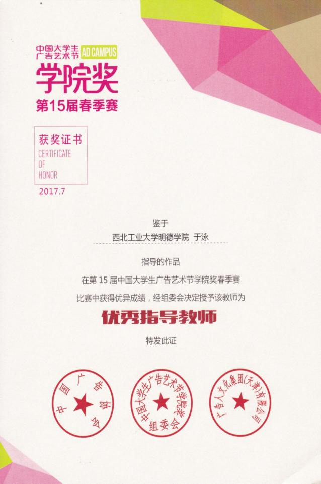 中国大学生广告艺术节学院奖是经中央批准,国务院评比达标小组同意设立的中国广告业大奖,内容涵盖学术研讨、创意大赛、人才交流等方面。2016年至今,我院学生已连续参加了七届中国大学生广告艺术节学院奖,累计投递作品数量超过千件,共获得多项等级奖,入围奖和优秀奖。