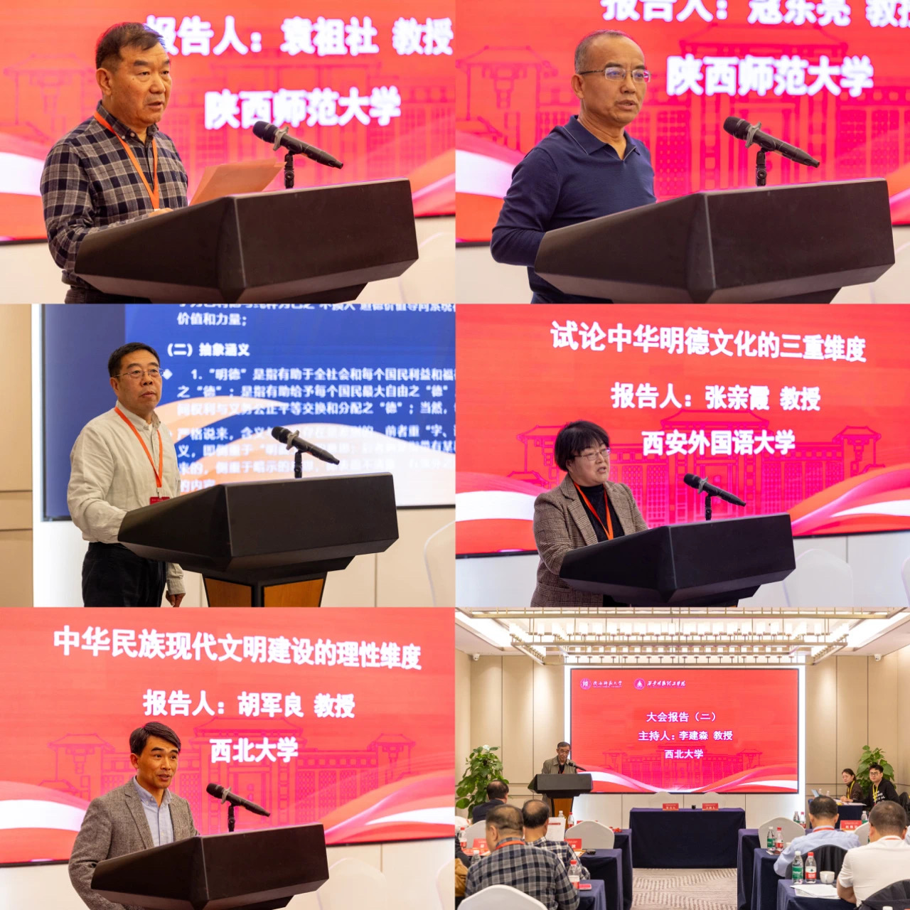 主旨发言第三阶段由西北大学李建森教授主持,陕西师范大学袁祖社教授以《“君子风范”与“公民人格”:中国传统德性伦理的现代性转化》为题、陕西师范大学寇东亮教授以《新时代道德建设的话语及其结构》为题,三亚学院媱轩鸽教授以《“明明德”对新一轮财税改革的主要启示初探——兼议当前面临的挑战与对策》为题、西安外国语大学张亲霞教授以《试论中华明德文化的三重维度》为题、西北大学胡军良教授以《中华民族现代文明建设的理性维度》为题分别作主旨报告。
